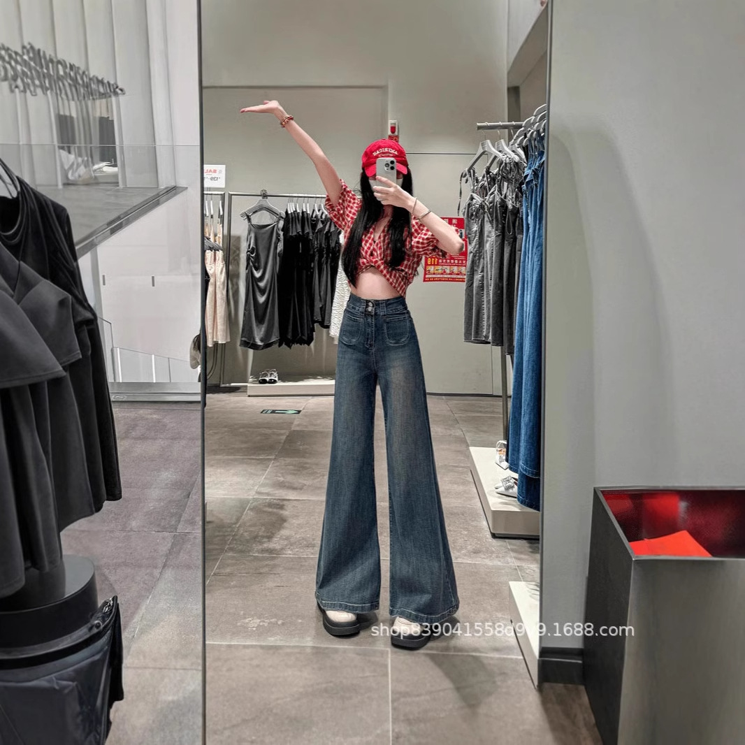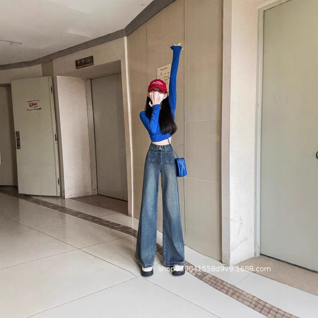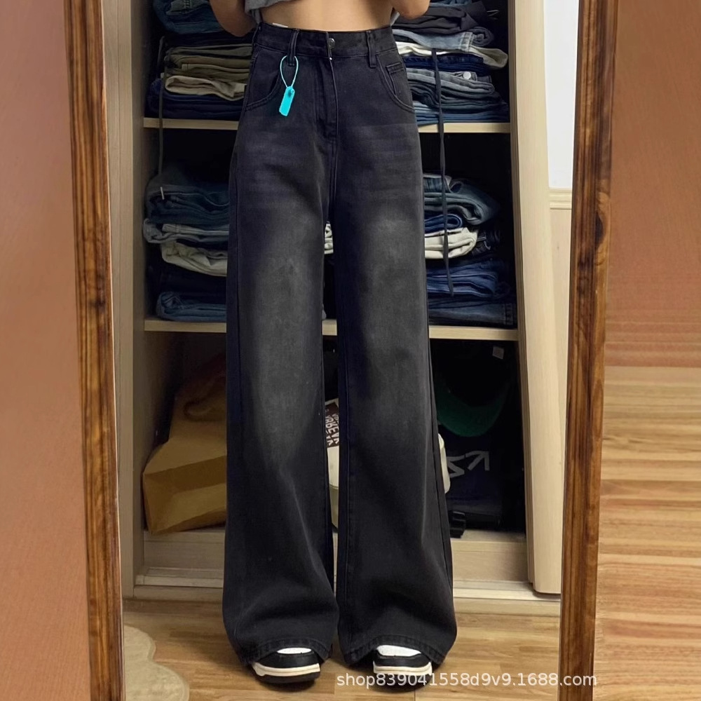 広脚ジーンズ女性秋梨型スタイル復古2024新サイズはやせて腰が高くてまっすぐなズボンを引きずっている