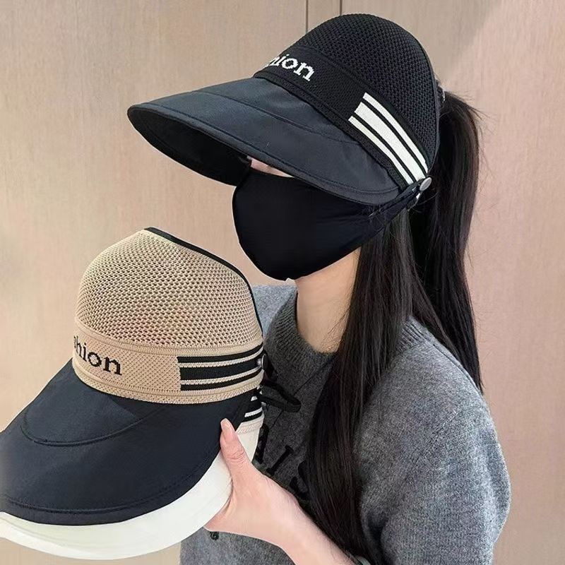 マスクを掛けることができ、調節可能なひさし付きキャップ、女性用、顔を小さく見せる、日焼け防止、屋外用日よけ帽子、リベット装飾、大きなつば