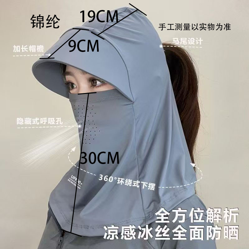 夏の日焼け止めマスク一体帽子保護首つば女ナイロン氷糸帽子紫外線防止マスク騎行保護