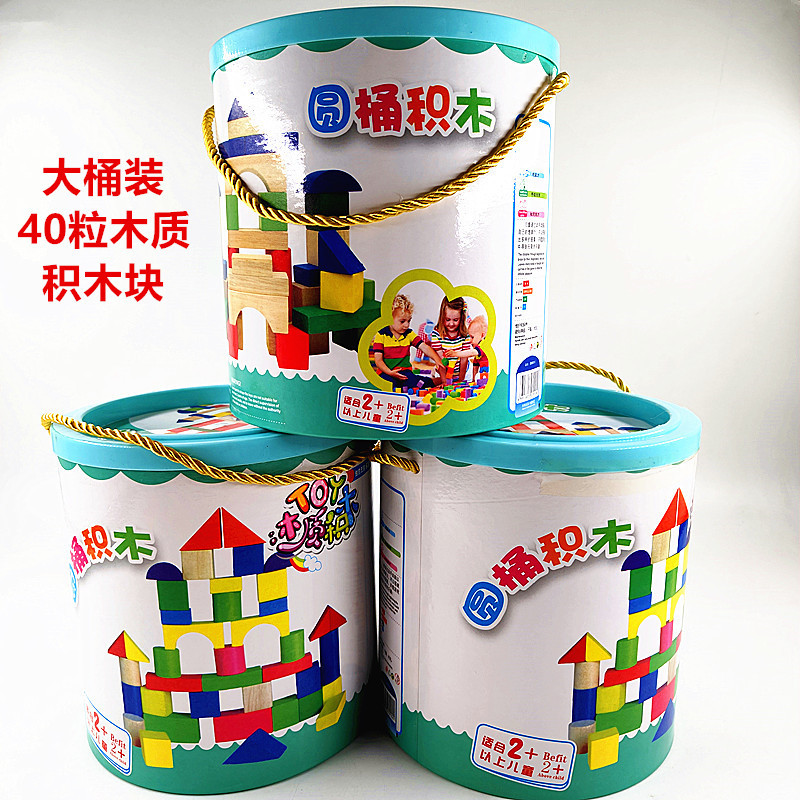40粒の大きい丸い桶の木製の積み木の積み木の卸売りは積み木の桶を詰めて贈り物を詰めます。