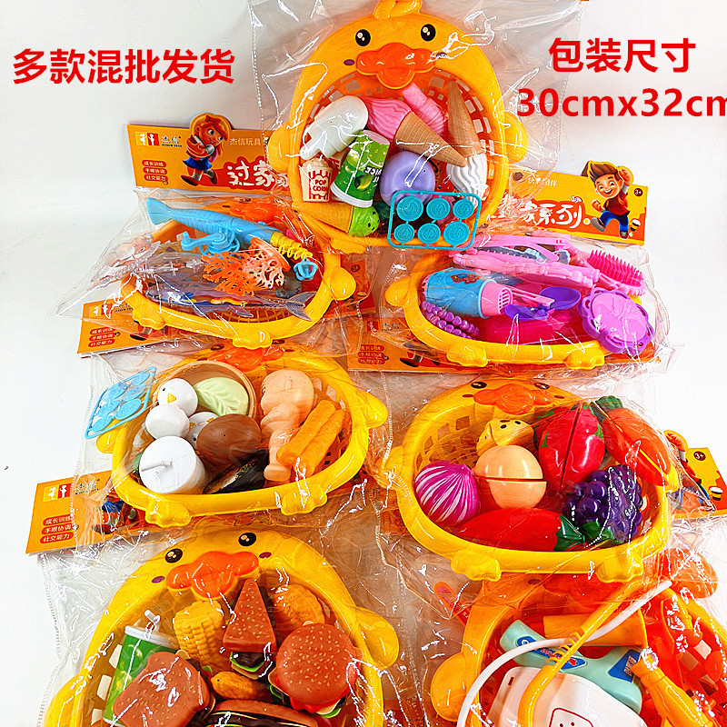 小鸭子多种款式儿童收纳篮过家家玩具套装饰品钓鱼汉堡水果医具工