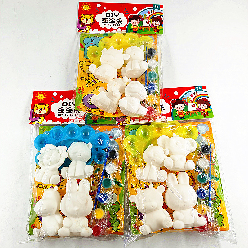 子供用diy塗装玩具セット動物人形模型彩色絵白胚絵画幼稚園の露店塗装
