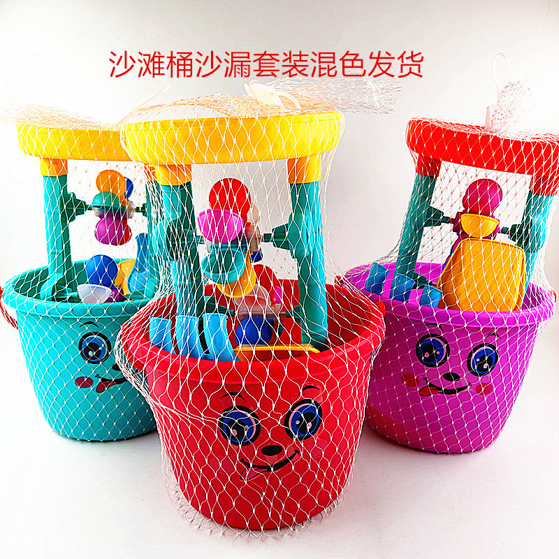 新出ビーチバケツ砂時計4点セット水遊び砂遊び道具子供屋外砂時計露店リング