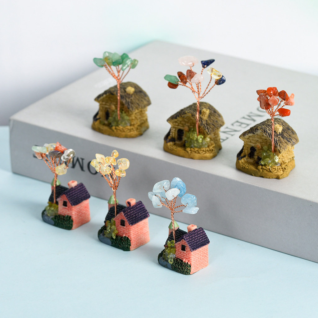 天然水晶の木の砂利の置物水晶の木の家庭の創意的な事務装飾工芸品の白い小屋の形