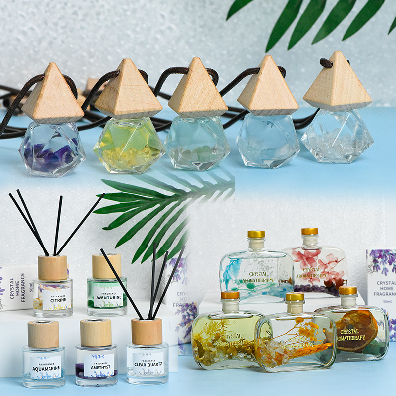 車の円筒形クリスタル香水車の無火アロマエッセンシャルオイル車の装飾ホーム長期持続的な香り空気清新