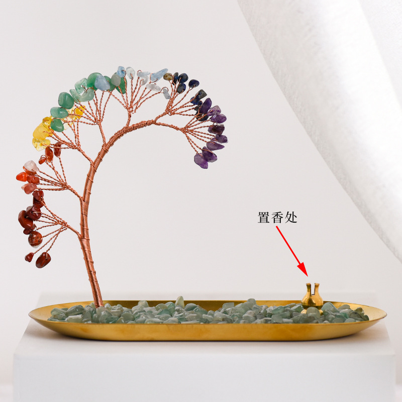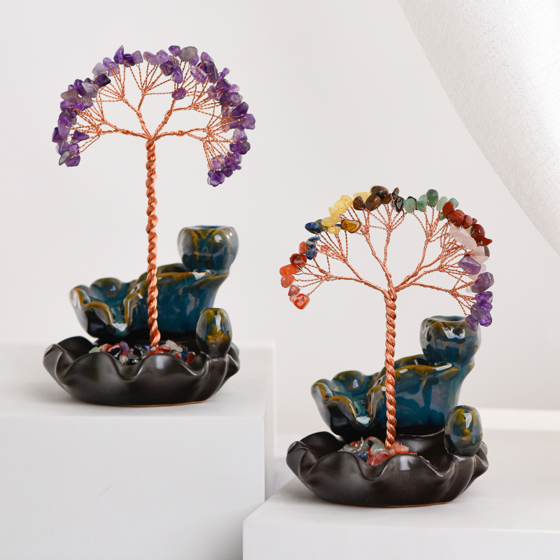 卸売カラフルなクリスタルツリー香炉装飾品蓮座装飾品工芸品アメジストクリエイティブツリーオフィスデスク装飾
