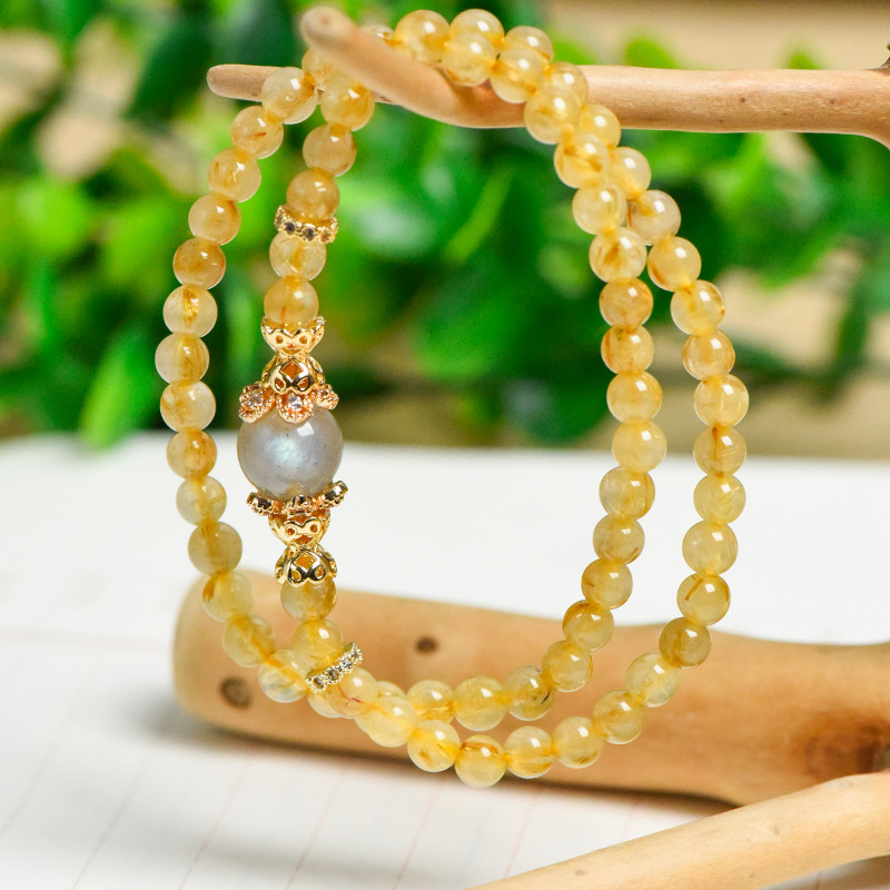 卸売天然ブロンドクリスタル 6 ミリメートルラウンドビーズダブルサークルシンプルなブレスレット 10 ミリメートルグレー月光転送ビーズジュエリーブレスレット