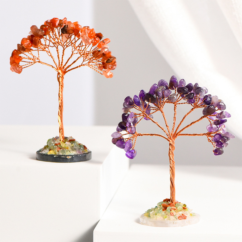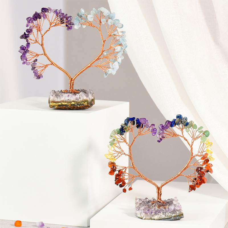 卸売りの愛の金の天然の紫水晶のクラスタの台座の水晶の木は工芸品の家の事務のデスクトップを飾って木を飾ります。