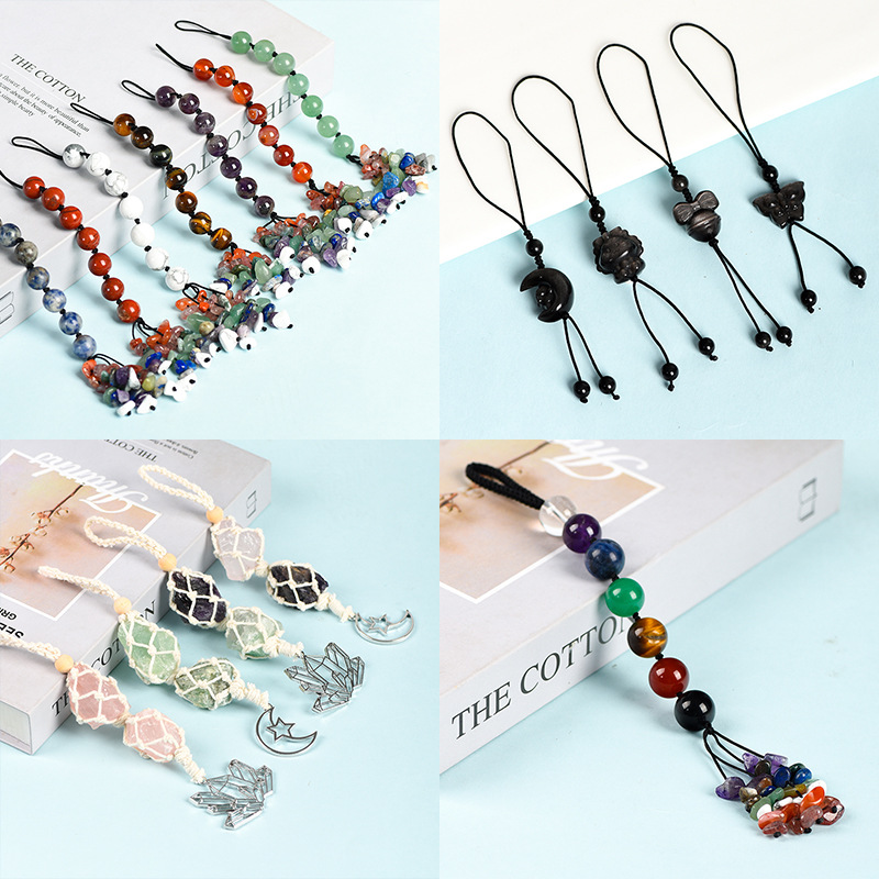 天然銀曜石ペンダント水晶原石携帯ストラップ星月ペンダント円珠金手作りカラー織り卸売り