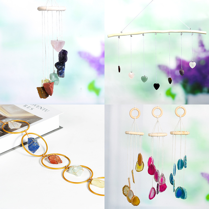卸売りの不規則な原石の風鈴の窓の鈴の車は多色の瑪瑙の優雅の家のペンダントの客間のベランダの装飾品を飾ります。