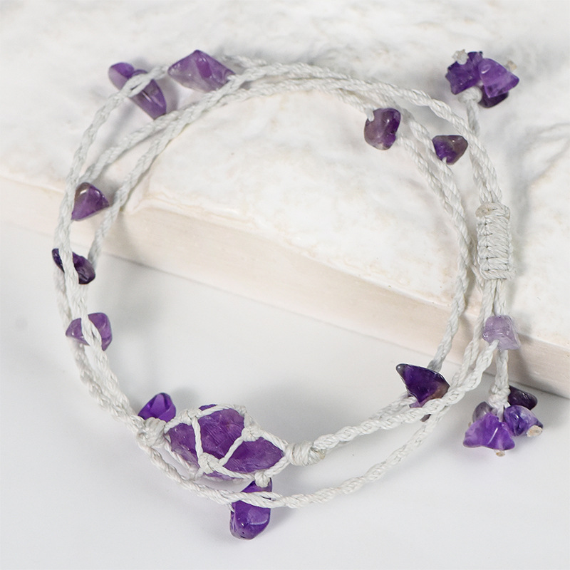 新中国式天然水晶砂利森系編みブレスレット調節可能両用紫水晶女性レトロペンダント卸売り