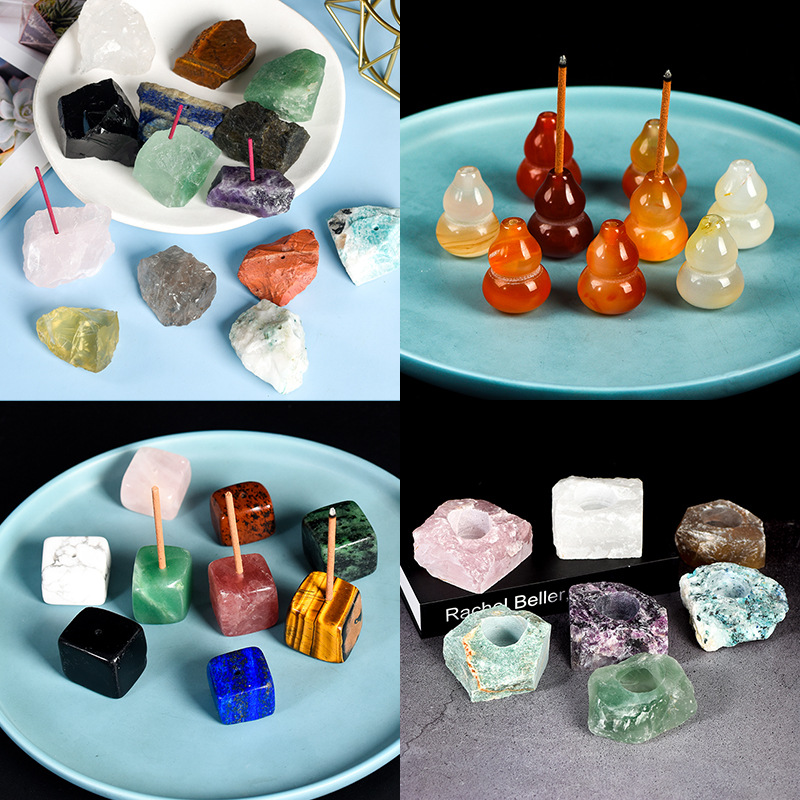 天然水晶の不規則な原石の香りはピンクの白い水晶の四角の燭台を挿して仏瑪瑙のヒョウタンの台の卸売りを提供します。