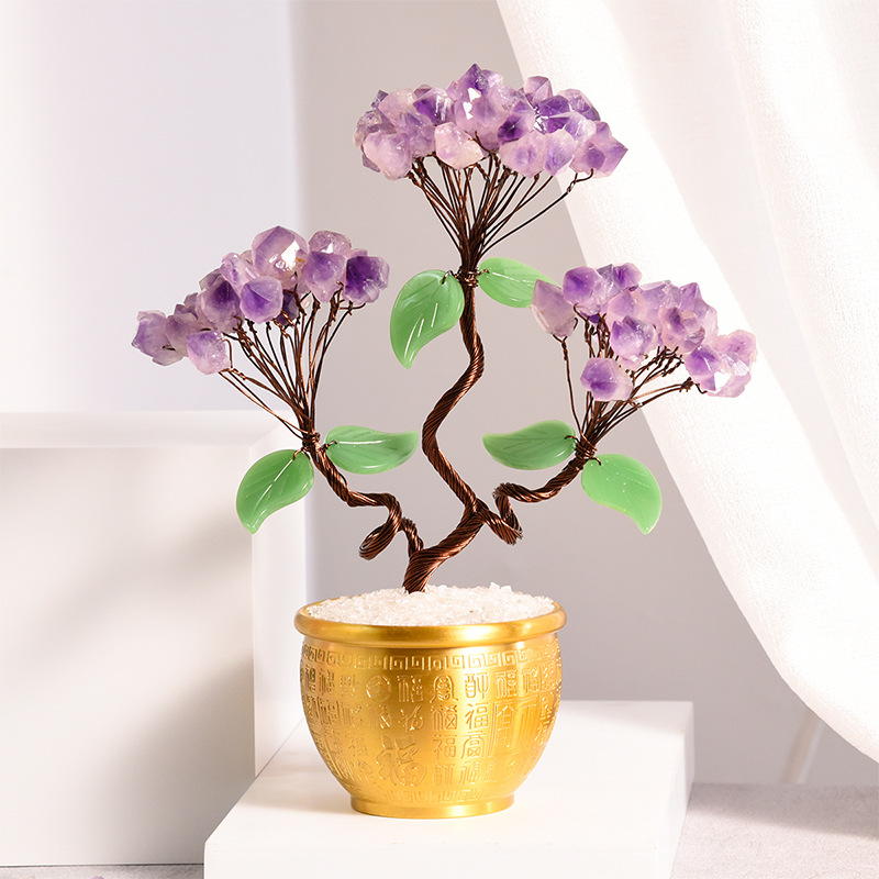 天然水晶樹紫晶牙百福かめ聚宝盆工芸品家庭創意事務装飾工芸品置物