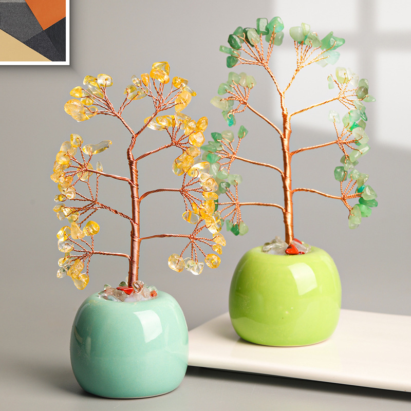 天然水晶の木の砂利の色の缶の置物の工芸の木の家の創意の事務装飾の工芸品のカラーの形の底