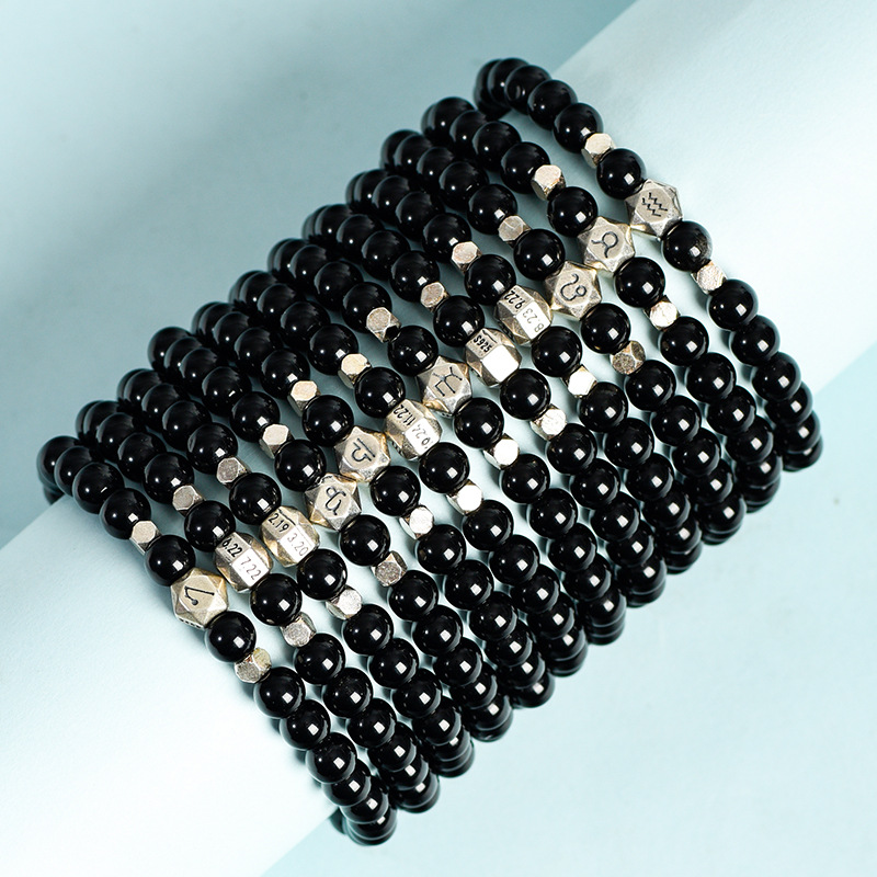 天然黒曜石十二星座星珠ブレスレット黒曜石宇宙ブレスレットカップル