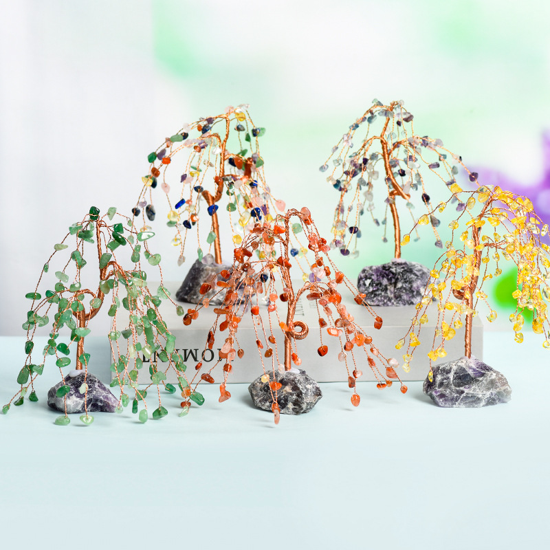 水晶の台座のしだれた柳の金の水晶の木は工芸品の紫晶の水晶の木を並べます。