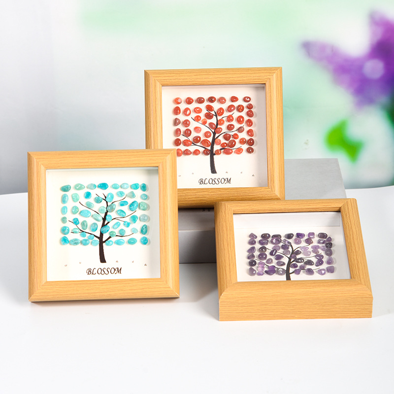 四角の木の形の原石の水晶のフォトフレームは台を並べて卸売りします。