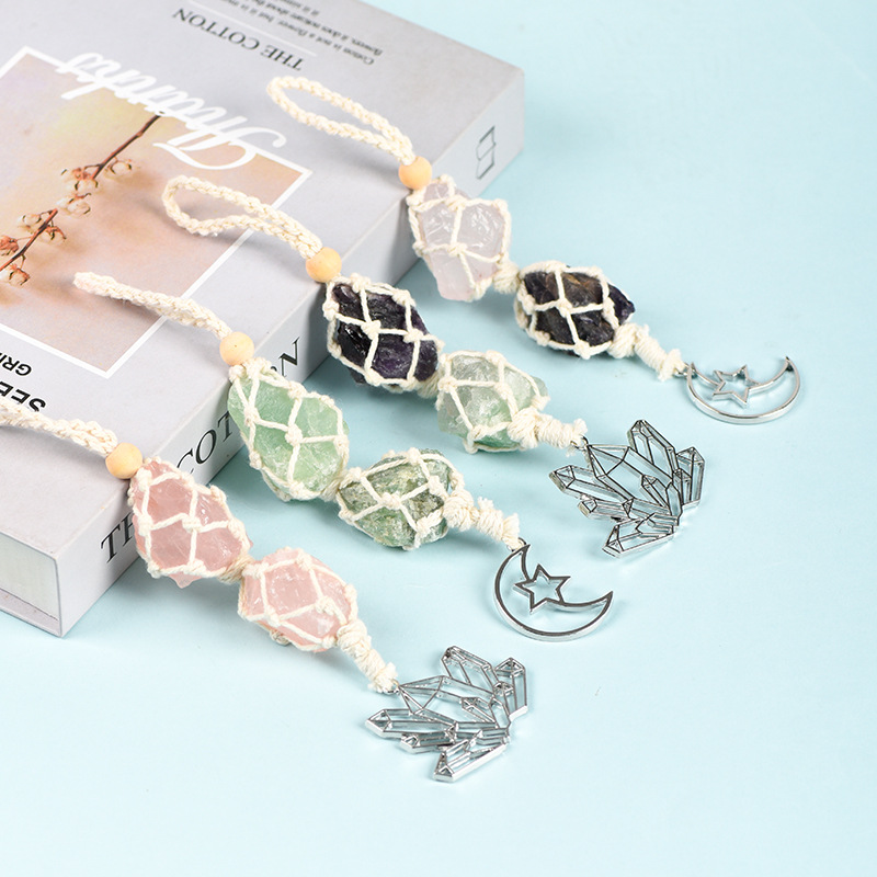 アマゾン天然紫水晶原石月星飾り家庭装飾プレゼント卸売り車ストラップ