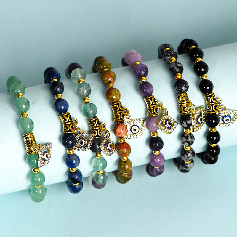 国境を越えた新製品悪魔の目の時間宝石ブレスレット欧米ファッションレトロ水晶ビーズブレスレット卸売り