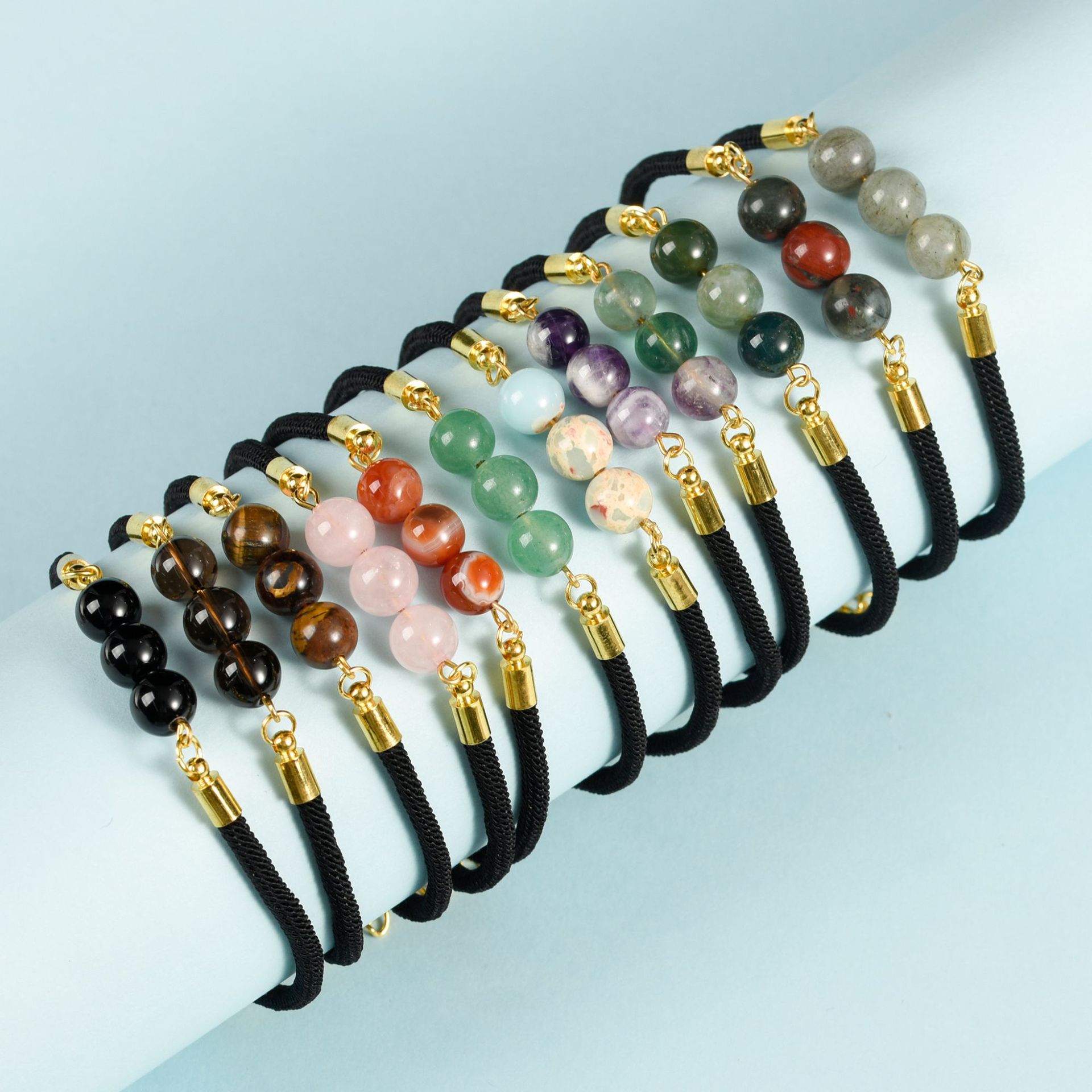 クロスボーダーの人気シンプルな黒縄三生三世ブレスレットピンク水晶虎眼石春デザイン感転運珠手串