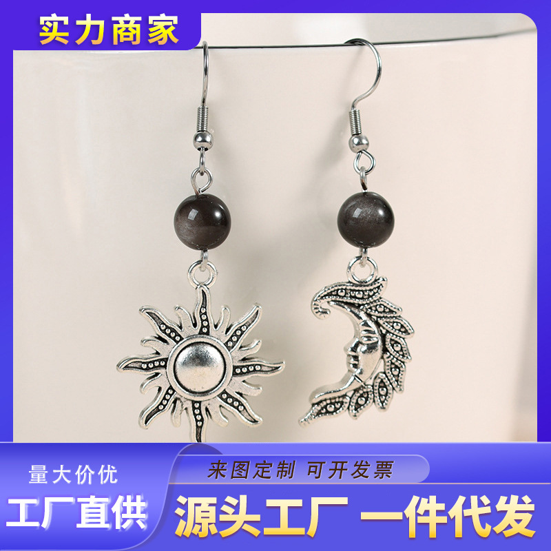 外国貿易のアイデアは非対称です。左右の星の月のイヤリングは国境を越えてアマゾンの人気アクセサリーです。