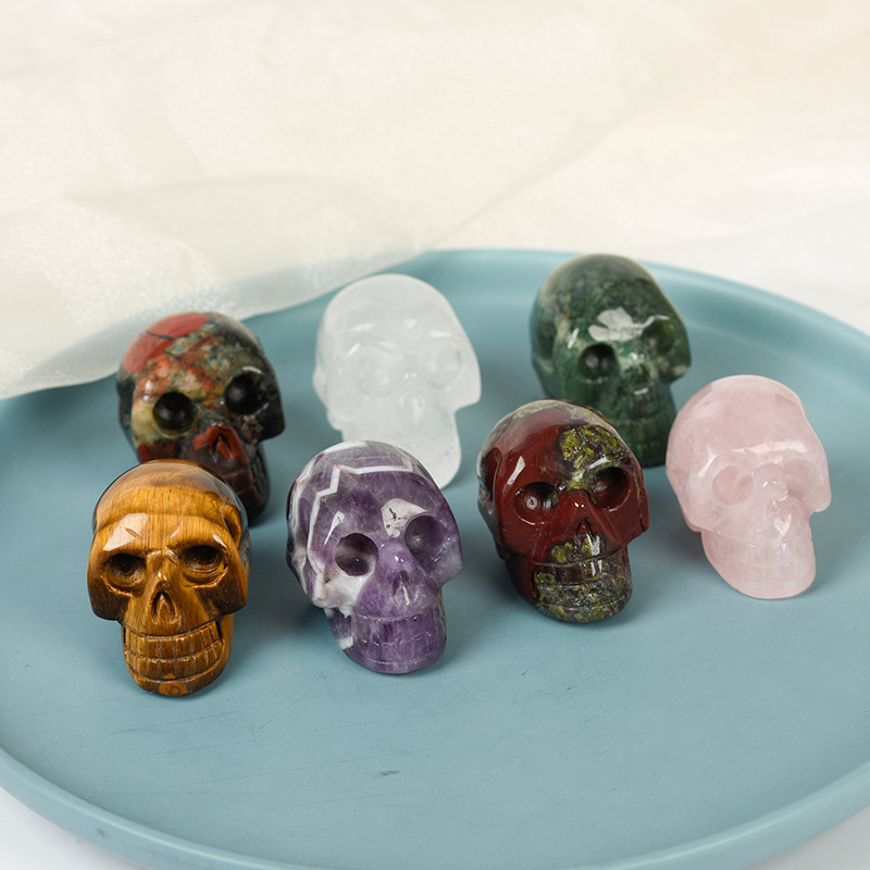 水晶彫刻頭蓋骨玉ホームオフィス水晶粉晶東陵石半宝石1.5インチスカル振り子
