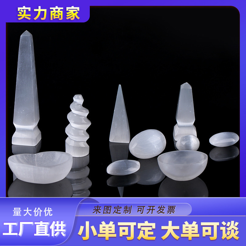 天然透体水晶石膏スパイラルエネルギー石水晶療養石膏棒ボウルは専門工場価格をカスタマイズした