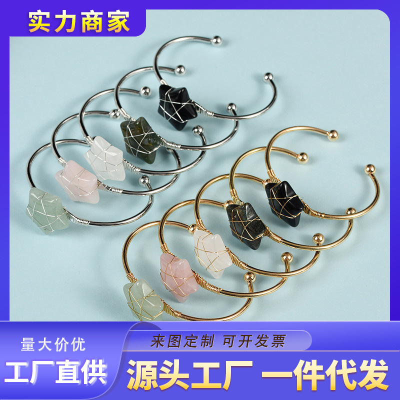 国境を越えた対外貿易の白い水晶の粉の水晶のアイデアの五角星型の手作業の巻き線は天然の水晶の裸の石のブレスレットを合わせます。