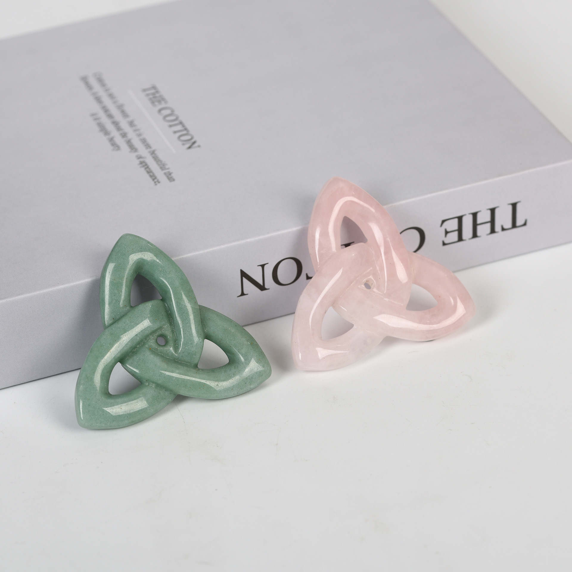 卸売り玉置物家庭装飾水晶粉晶東陵玉半宝石三角如意花彫刻工芸品