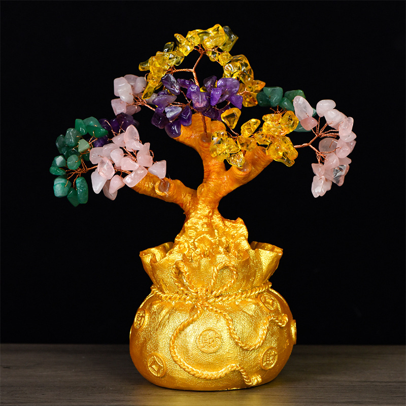 開店祝いの置物、家庭用リビングやオフィスの装飾、クリスタル工芸品、黄水晶の木、紫水晶の木、幸運を呼ぶ紫水晶