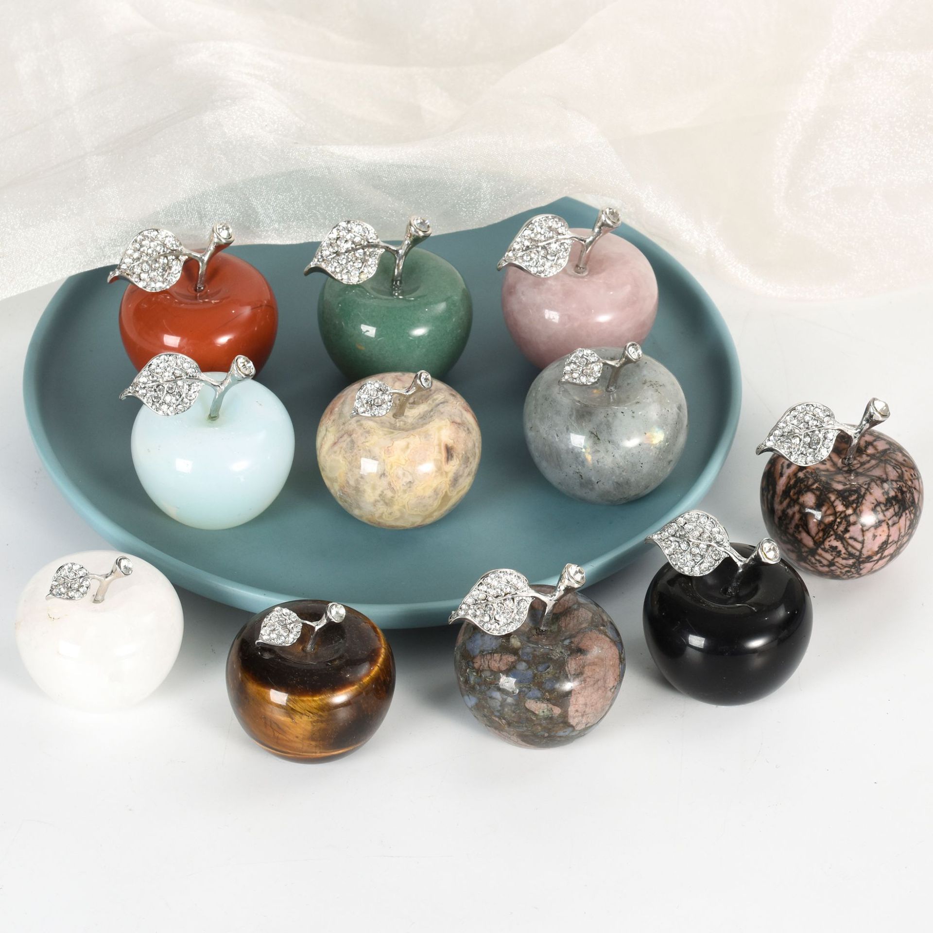 天然手作り汗玉水晶リンゴ置物原石彫刻品家庭創意装飾工芸品クリスマスプレゼント
