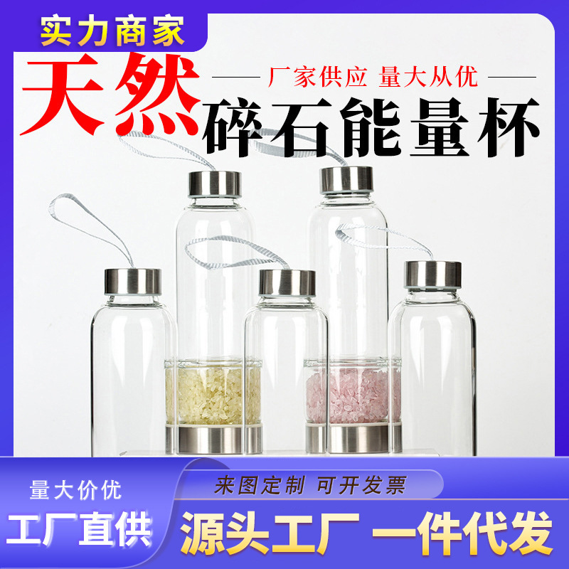 国境を越えて人気の天然水晶破砕エネルギーグラス携帯屋外創意層遮断消磁水治療カップ