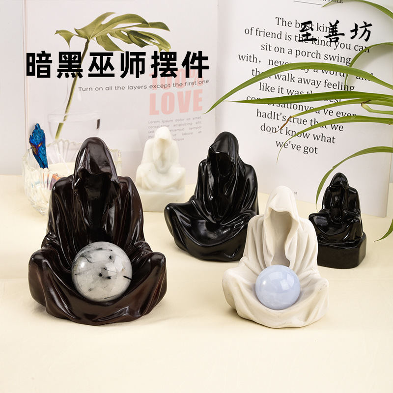 天然黒曜石暗黒呪術師彫刻品水晶玉原石ベース創意装飾品クロスボーダー商品