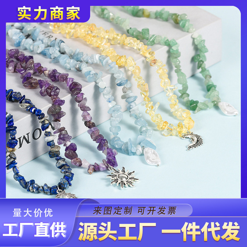 砂利ビーズネックレスセーターチェーン部品カラーストーン水晶砂利紫水晶不規則ビーズカラー水晶