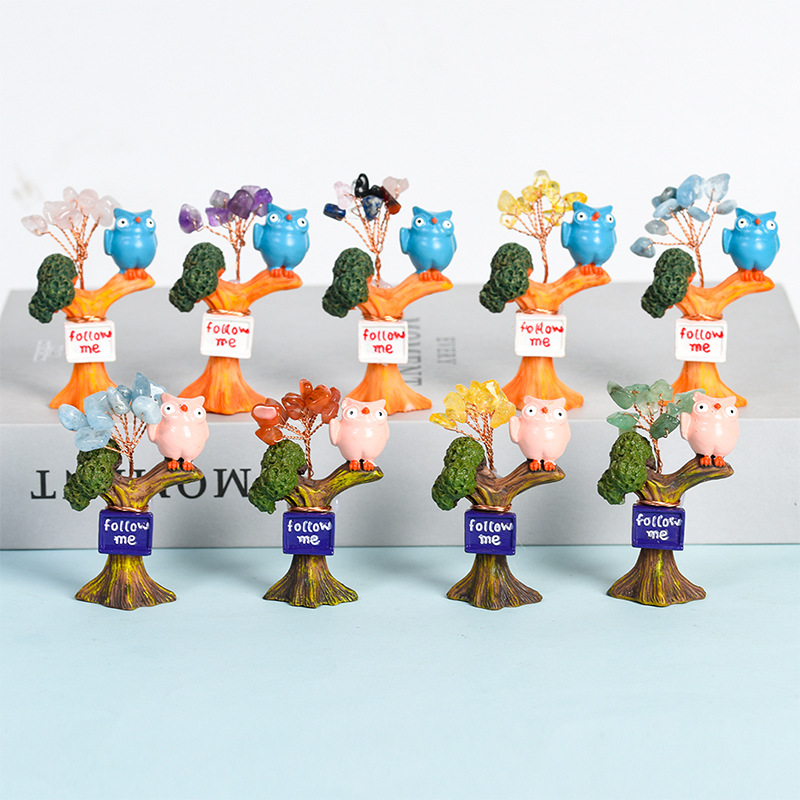 天然水晶の木のフクロウの小石の置物のアイデアの木の家の創意の事務装飾の工芸品の造形