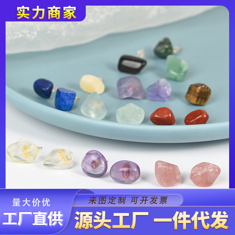 欧米の国境を越えた対外貿易天然水晶ピアス女性黄水晶紫水晶研磨随形ピアスシンプルなイヤリングアクセサリー