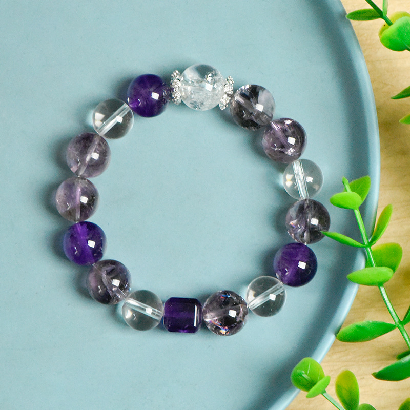 天然紫阿塞12mm丸珠紫水晶方糖ブレスレット単輪と11mm白水晶編み手串卸売り