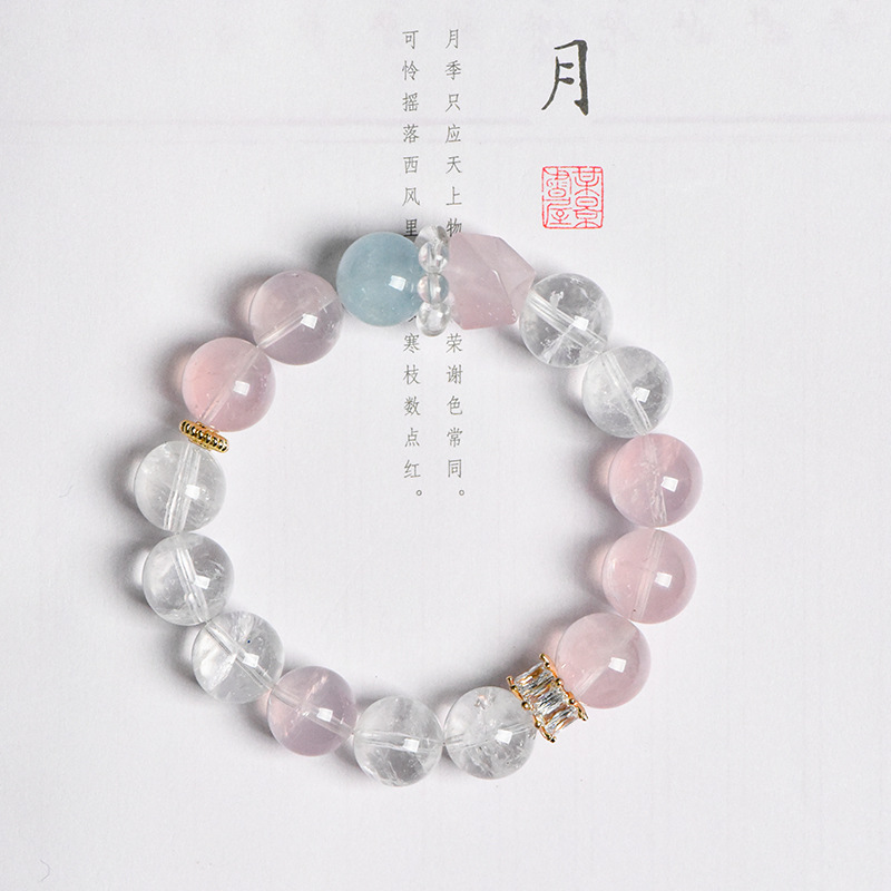 天然ピンククリスタル 12 ミリメートルラウンドビーズブレスレットホワイトクリスタルアクアマリンラウンドビーズブレスレットジュエリー彼女の誕生日ギフトとして