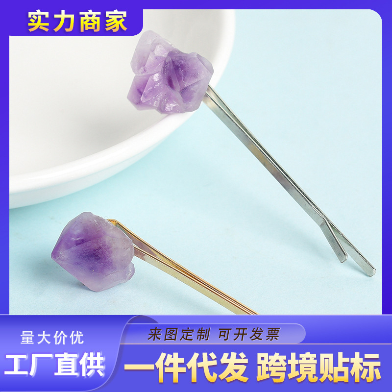 デザイン感小衆水晶原石紫水晶新中国式重工ヘアピン個性シンプルで優雅なレトロなヘアフォーク