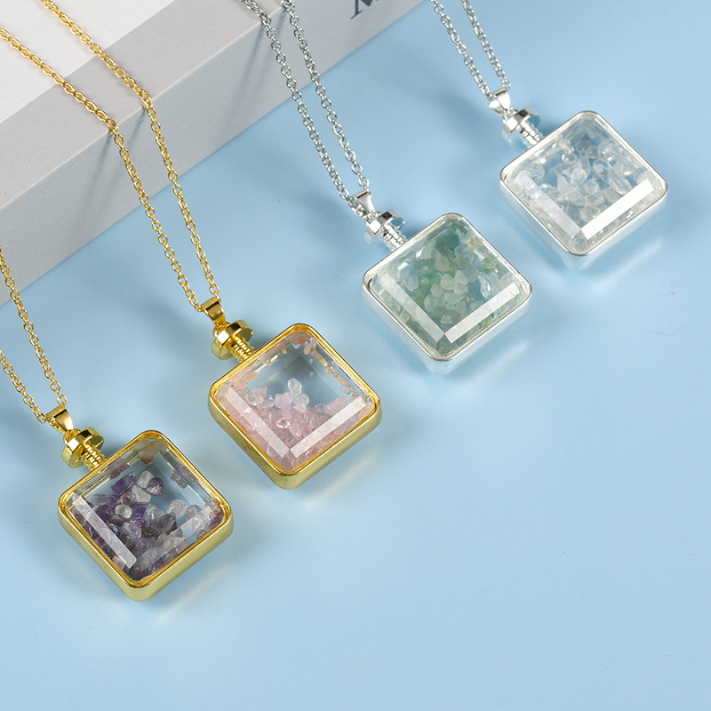 アマゾンの人気新型多色タンポポのネックレスは石の四角の紫の粉の水晶の個性のネックレスの円形のペンダントを飾ります。
