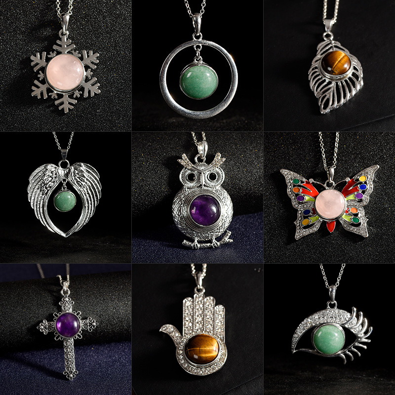 天然水晶の新型海外のカラフルな水晶の霊はペンダントを並べます。