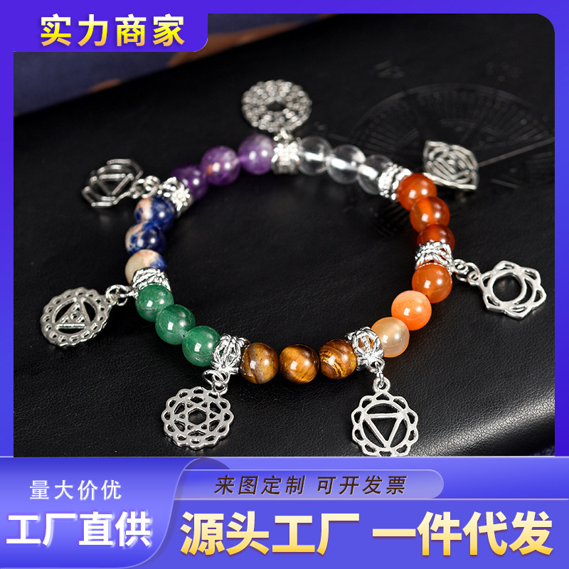 越境新品ファッション個性七脈エネルギー水晶ブレスレット欧米ファッションレトロ編み革ブレスレット