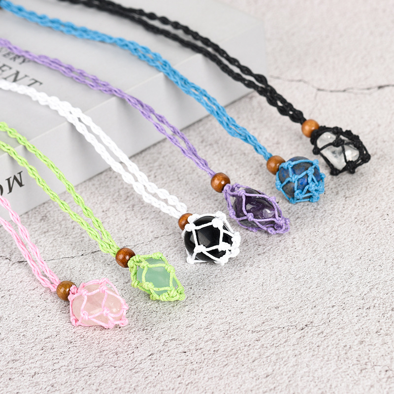 天然網兜水晶ペンダントは欧米のピンクと白の国境を越えて、卸売りの不規則な石のネックレスのアクセサリーを提供しています。
