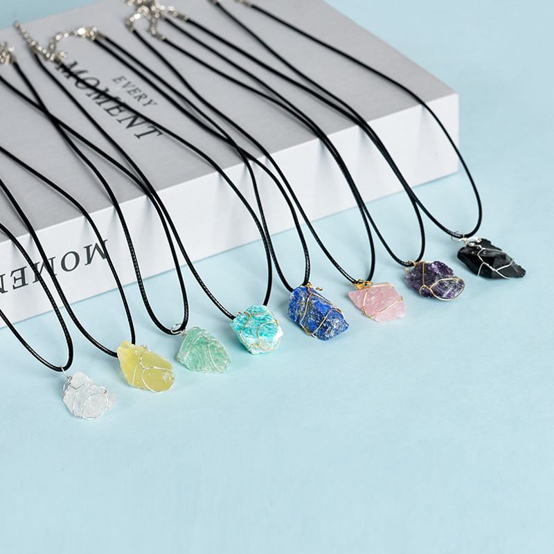 大量スポット個性ボタン水晶原石手作りdiyペンダントネックレス材料アクセサリー卸売り