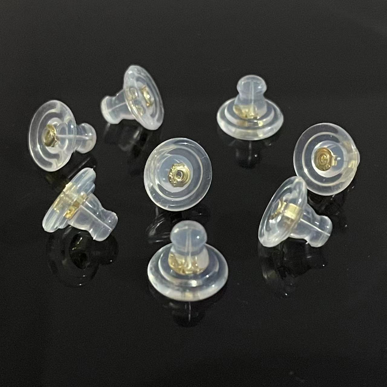 シリコン耳栓 落下防止 透明ラッピング フライングディスク型 G18k メタル耳栓 DIYイヤリングアクセサリー イヤキャップ 卸売
