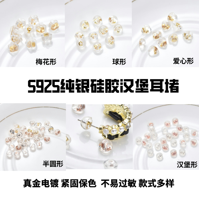 S925純銀シリカゲルバーガー耳栓diy耳飾部品耳栓イヤリング後栓滑り止め耳栓卸売り防止