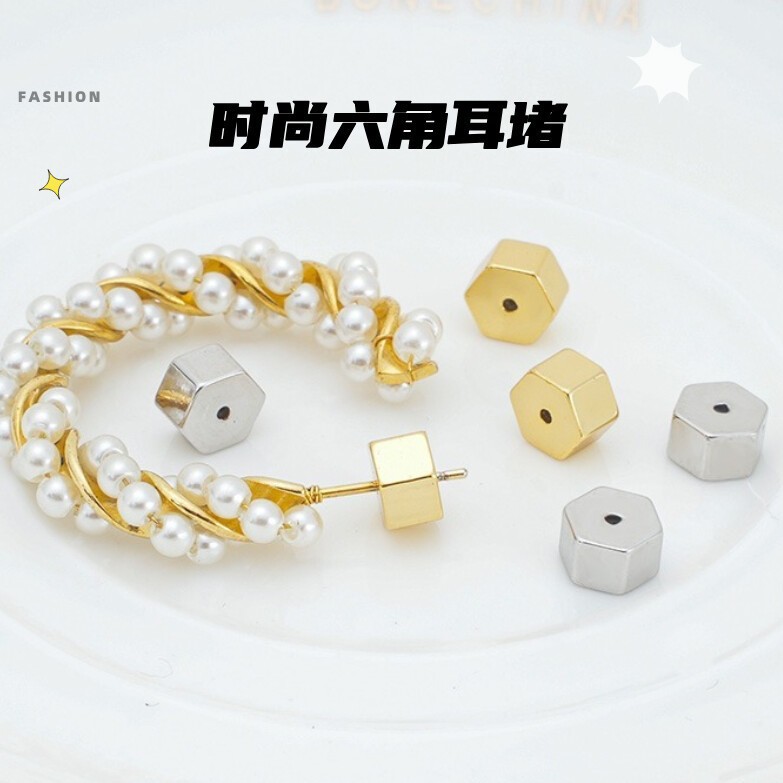 保色18k金六角形耳栓diyアクセサリー軽贅沢高級金属銅環境保護締め付け防止耳栓