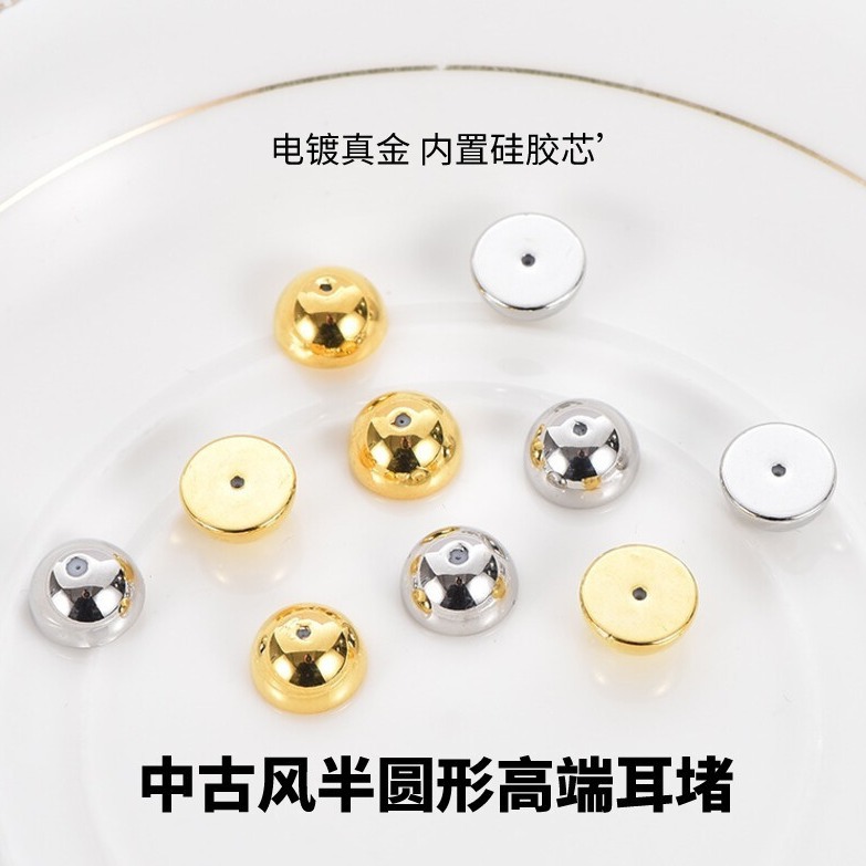 シリコンバッグ金大ハンバーグ耳栓DIY耳飾り部品銅メッキ18k透明丸耳栓欧米人気