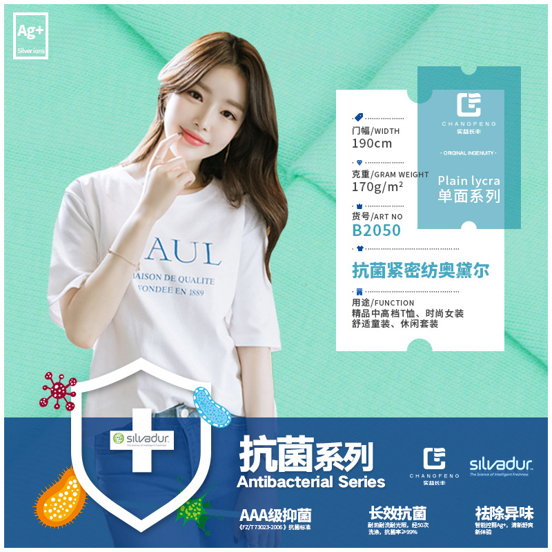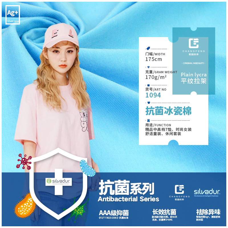 実益長豊紡織新抗菌抗菌ニット生地40s氷磁器綿子供服半袖tシャツ生地
