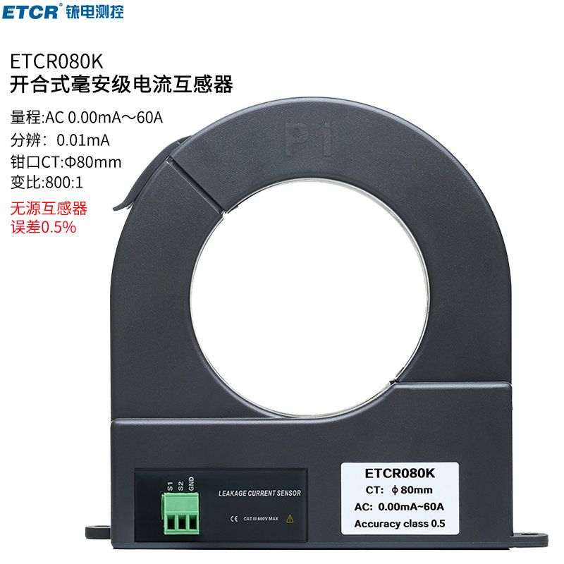 ETCR080K 開閉式漏洩電流トランス 大口径交流トランス 分解能 0.01mA誤差 0.5%